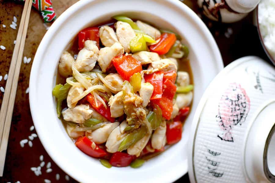 Here is what Caroline says about her recipe: “Easy chicken chop suey cooked in a delicate savory sauce. This simple recipe is perfect if you are busy but still want to enjoy a homemade Chinese dinner! Believe me, this dish is ready in less than 20 minutes.”